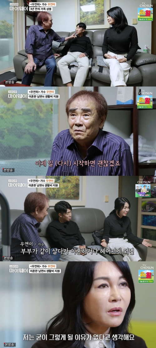 가수 우연이는 결혼을 두번이나 했었다고 하는데요. 그리고 두 번 모두 이혼했다고 합니다. 전남편과 이혼 사유는 결혼하고 나서부터 남편이 빚을 져서 경제적으로 힘들게 지냈다고 하는데요. 판잣집에서 추운 날을 보내야 할 정도로 생활고에 시달렸다고 해요.