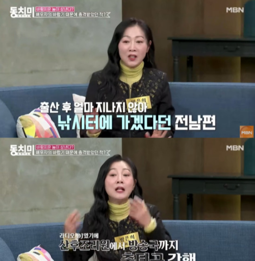 방은희 아들을 출산한지 얼마 되지 않았을 때 전남편이 낚시터에 갔는데 거기서 여자를 만났다고. 주변 사람들이 얘기해 줘서 남편이 바람이 난 걸 알게 되어 상당히 충격이 컸다고 합니다.