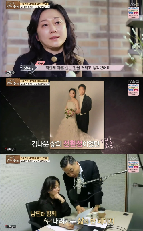 김나운은 가장 어렵고 힘든 얘기를 남편에게 제일 먼저 하고, 아픈 부분이나 말하기 힘든 부분도 아무렇지 않게 툭 터놓고 얘기할 수 있어서 마음이 편하다고 전했습니다. 가족 울타리 안에서 더욱 단단해져 간 김나운 배우.