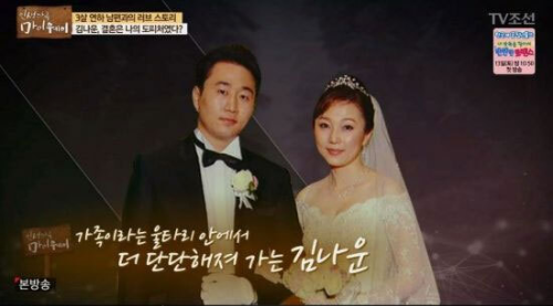 김나운의 아버지 사업실패로 부도가 나서 16살때부터 일을 하며 소녀 가장으로 액션부터 멜로, 라디오 등 가리지 않고 쉴 틈 없이 달려왔었는데요. 심지어 결혼식 당일 새벽 2시까지 녹화를 했었다고 해요. 방송 4인용 식탁에서 한때는 아버지 때문에 힘들었지만 이제는 아버지도 힘들었겠다며 표현하지 못하지 못한 것에 후회스러운 감정이 남는다고 전했습니다.