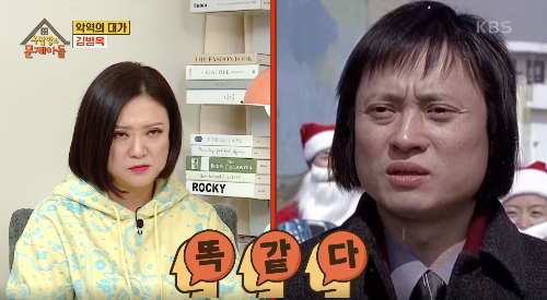 김병옥 단발 헤어스타일이 인상깊어 누리꾼들 사이에서 화제가 되었는데, 여러 연예인들과 닮은 꼴 사진짤이 온라인에 돌아다니기도 했어요. 특히 개그우먼 김숙과 얼굴과 단발 똑같아 웃음을 주었습니다.