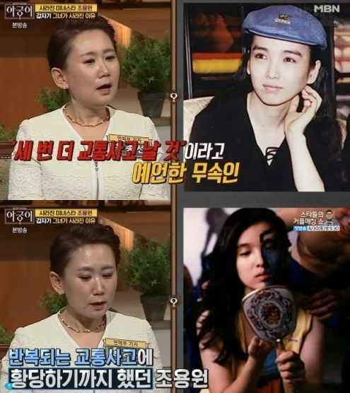 어떤 무속인인 조용원에게 세 번 더 교통사고가 날 것이라고 예언을 했었다고. 조용원은 일본에서 3번의 교통사고로 얼굴을 다쳤다고 합니다. 한편, 현재 조용원은 결혼하지 않은 미혼으로 알려져 있어요.