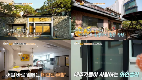 도심 속에 위치했지만 자연이 그대로 담긴 전원주택에 살고 있는 모습이 공개되었는데요. 휴식을 취할 수 있는 정원과 현대풍 주방, 와인셀러도 비치되어 있는데요.